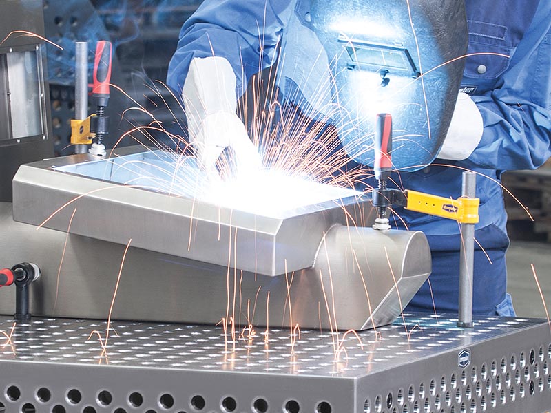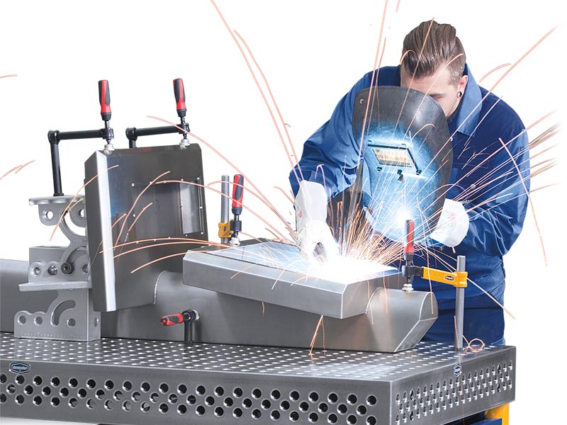 Eine Kombination aus hochfestem Grundwerkstoff und speziellem Härteverfahren ermöglichen beste Schweißtisch- Eigenschaften – weniger Verschleiß und extrem robust und langlebig.