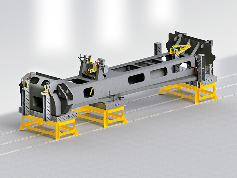 Das Schienensystem ermöglicht auch die Befestigung von Schweißteilen mit zig-Metern Länge. Und das mit höchster Präzision