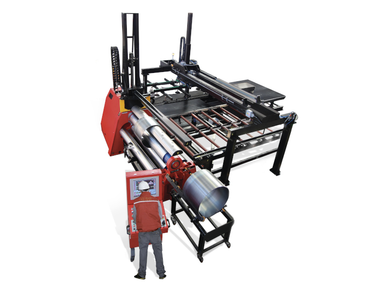 Eine weitere interessante Eigenschaft der MCB ist, dass das Blech horizontal in die Maschine eingezogen wird und dadurch können Zufuhrtische und andere Auf- bzw. Abladesysteme verwendet werden. Die Rundbiegemaschine kann somit eine automatische Walzlinie werden und eine hohe Produktivität mit extrem kurzen Walzzyklus garantieren.