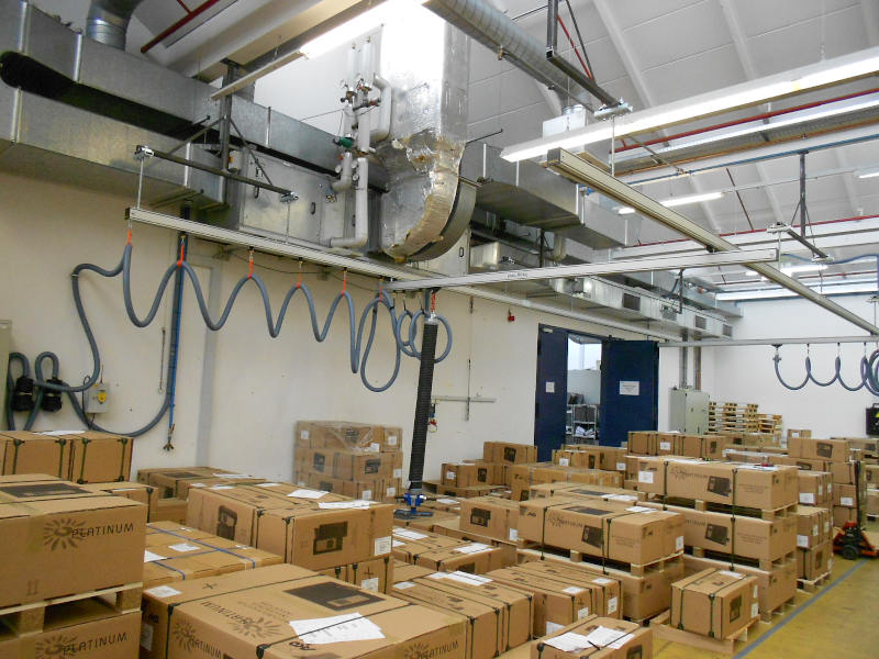 Alu-Leichtlaufschienensystem zur Abdeckung eines großen Arbeitsbereichs mit einem Schlauchheber-System. Das geringe Eigengewicht und die hohe Tragfähigkeit der Aluminiumprofile machen dieses Schienensystem zu einer optimalen Lösung für das Transportieren von Lasten.