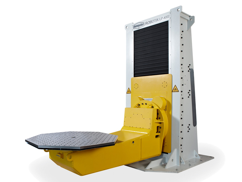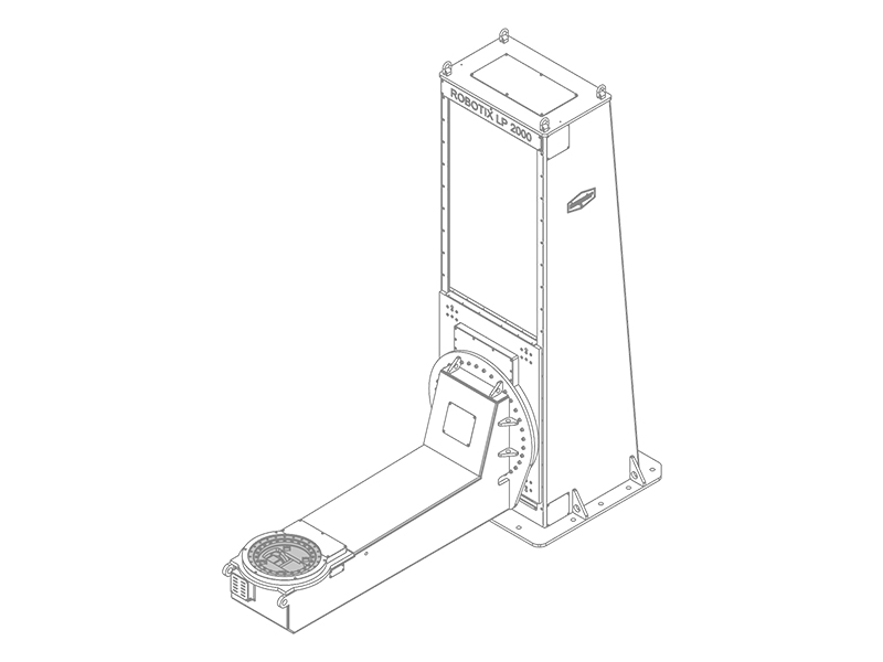 In der Ausbaustufe 3) haben Sie die Möglichkeit Ihr Werkstück beliebig im Winkel und in der Höhe zu positionieren. Der Robotix LP kann an manuellen Arbeitsplätzen mit einfacher Bedienflasche eingesetzt werden, oder optional mit intelligenter Teach-In-Steuerung. Der LP ist Konstruktionsbedingt bestens geeignet um ihn in eine Roboterzelle zu integrieren. Dabei werden alle Achsen über die Robotersteuerung frei programmierbar integriert.